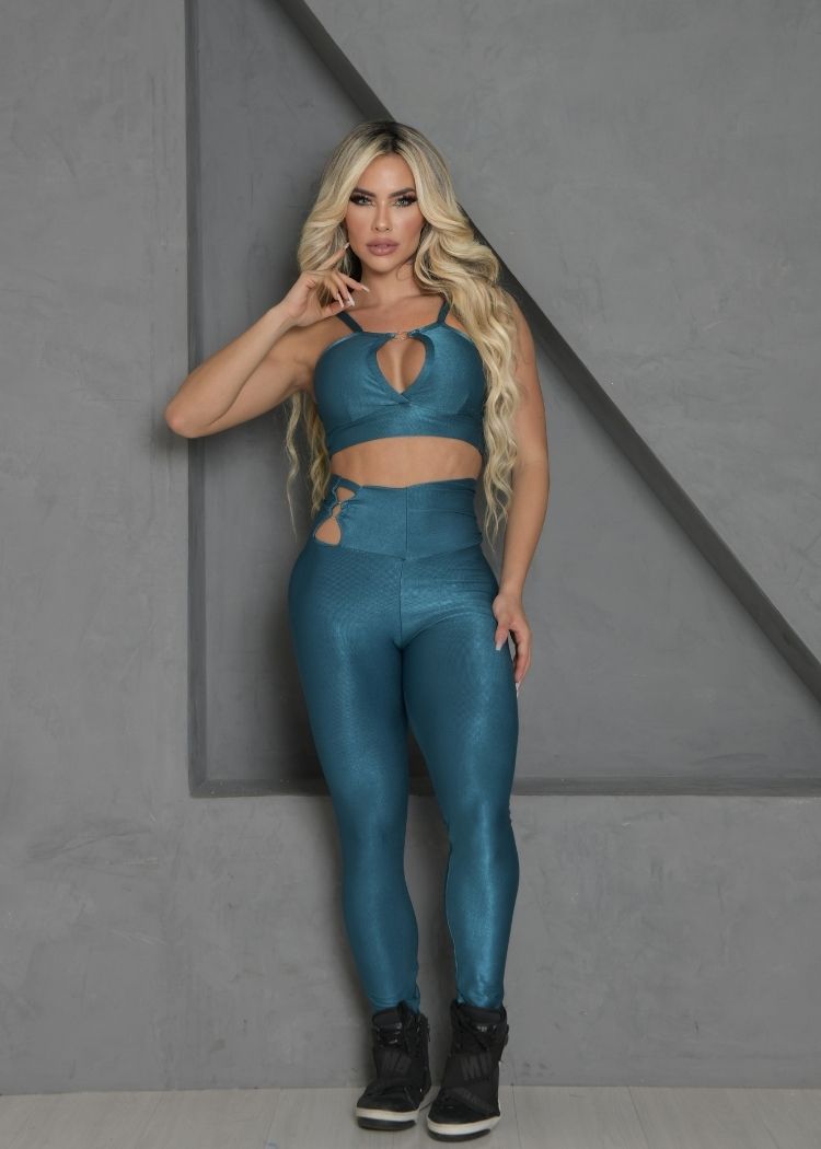 Conjunto Fitness Azul Petróleo com Decote Empina Bumbum Zero Transparência