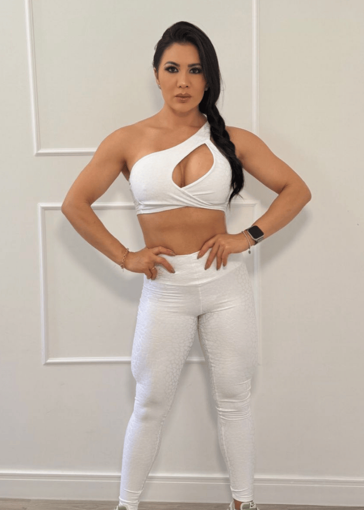 Conjunto Fitness Top Abril e Legging Onça Branca Empina Bumbum
