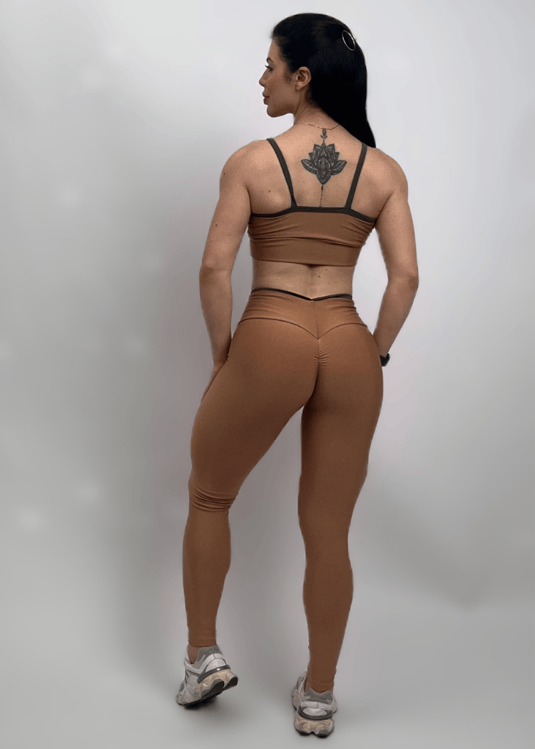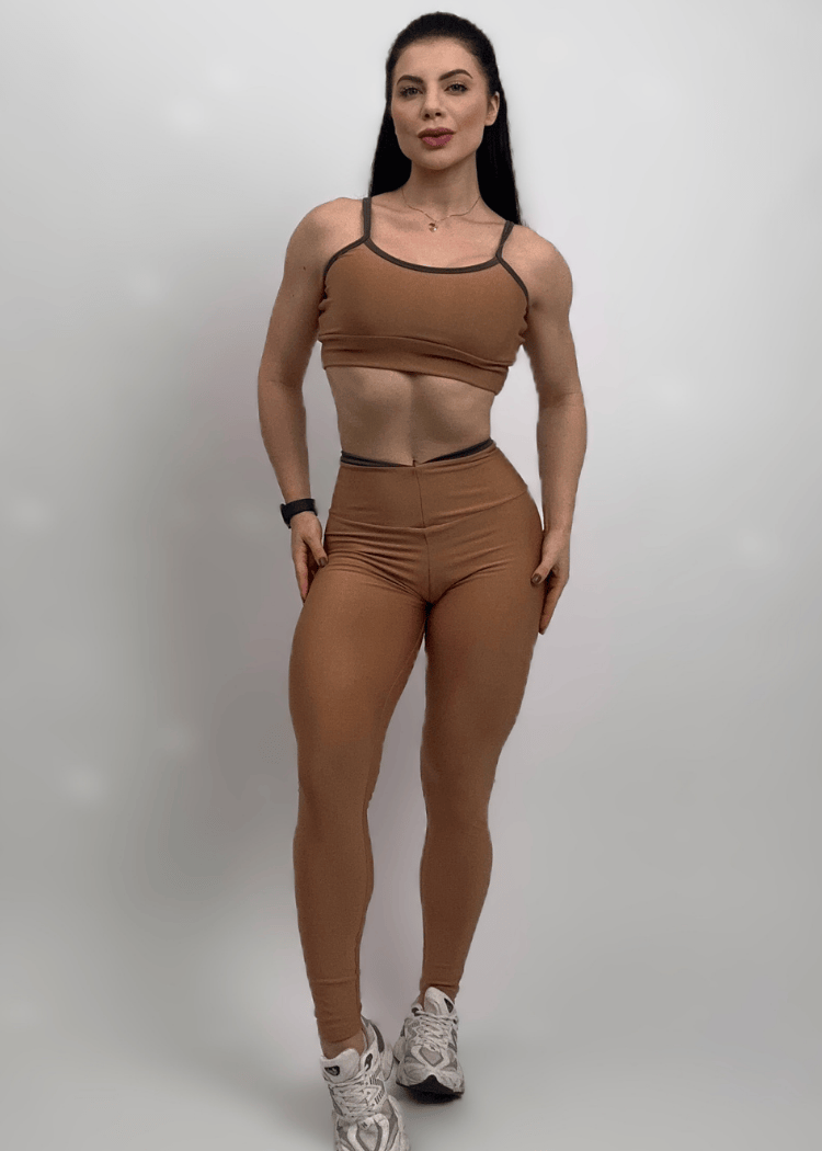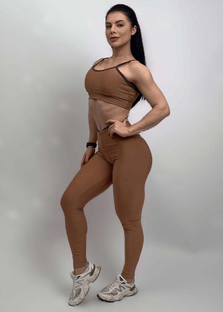 Conjunto Fitness Top Básico e Legging Capana Marrom Modela Bumbum