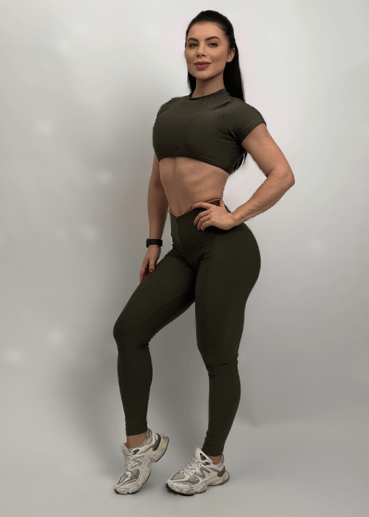 Conjunto Fitness Top Profético e Legging Capana Verde Musgo Modela Bumbum