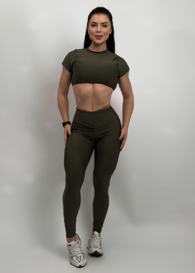 Conjunto Fitness Top Profético e Legging Capana Verde Musgo