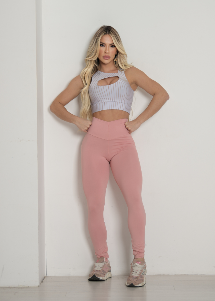 Conjunto Fitness Top Suzana Listras Nude e Legging Lisa Nude