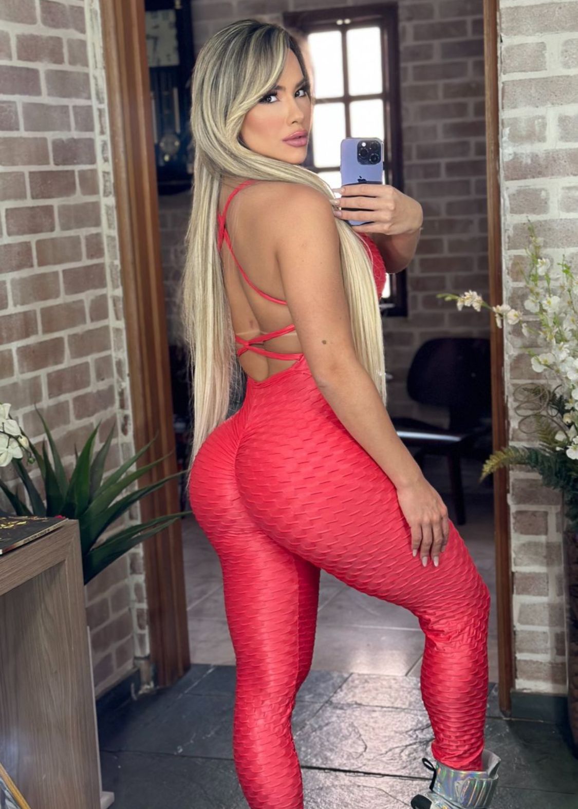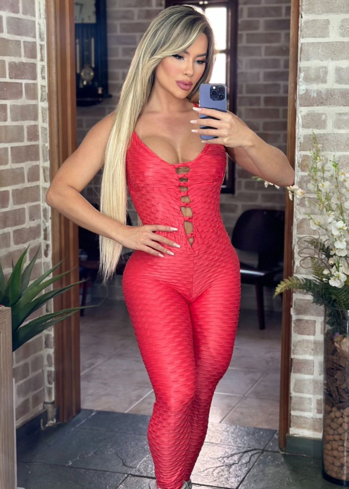 Macacão Brocado Pala Aberta Vermelho Modela Bumbum Zero Transparência