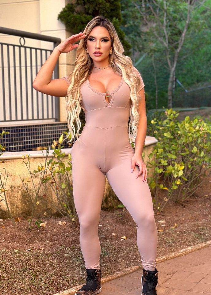Macacão Fitness Basic Bege Empina Bumbum Zero Transparência