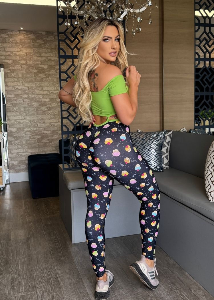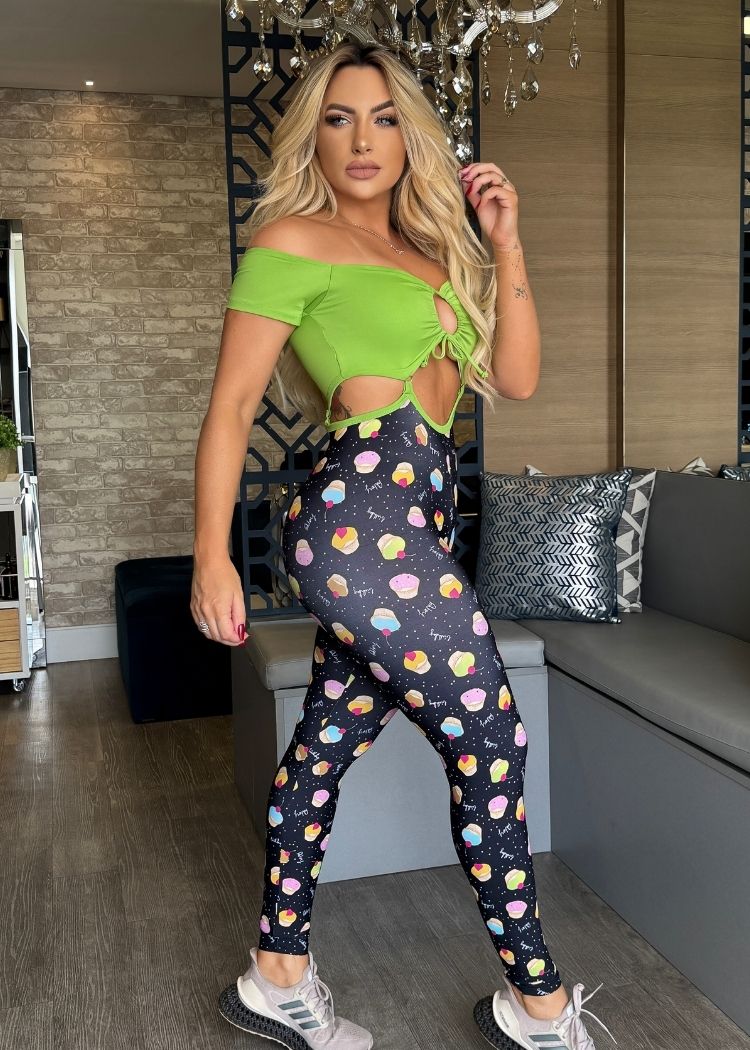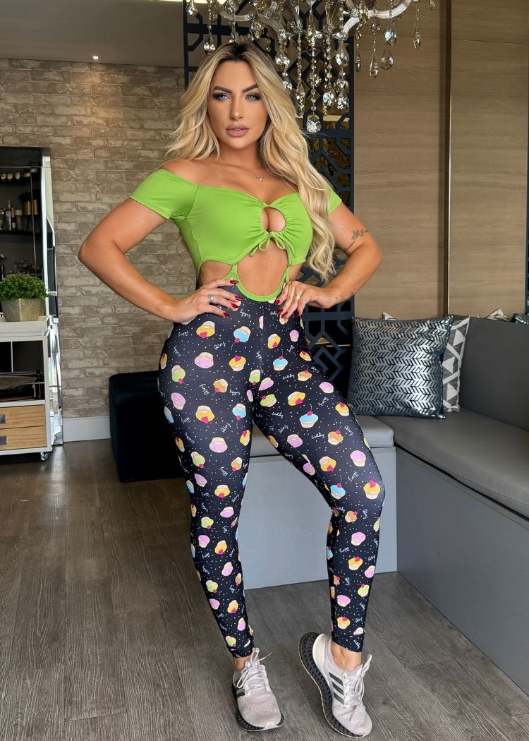 Macacão Fitness Top Verde Neon Legging Cupcake Empina Bumbum