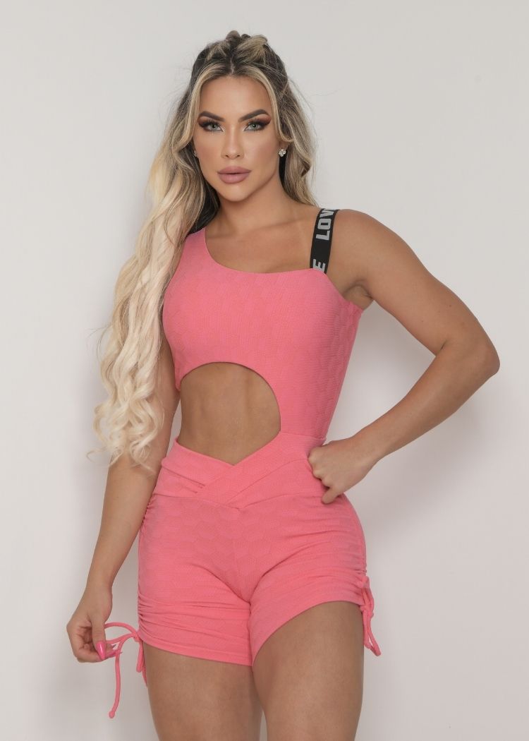Macaquinho Fitness Goiaba Abertura Lateral em Jacquard